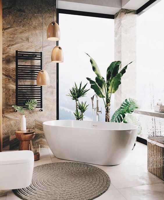 In making a bathroom look beautiful and feel comfortable, natural lighting is an important factor. The natural lighting will bring the nature feel to the bathroom so that the bathroom will feel comfortable. The bathroom will also feel more natural with the presence of several plants and natural elements.