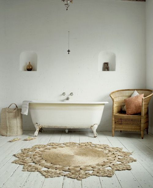It is rather strange to use a carpet in the bathroom. However, for the sake of making the bathroom look beautiful, the carpet is the most appropriate item to use. The rattan carpet is the best choice because the rattan will not feel slippery when exposed to water. Besides that, the rattan carpet will also not get wet, so its use is much simpler than using cloth rugs.