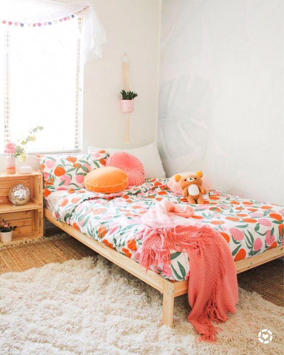 Bringing the cheerful and fresh look to the bedroom is a great idea. The cheerful look will boost your mood in the morning and make you feel happy in doing your activities in a day.