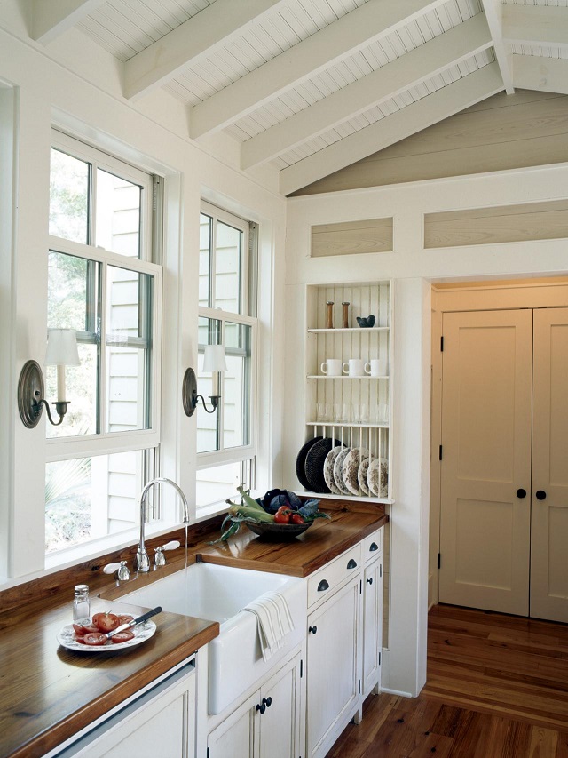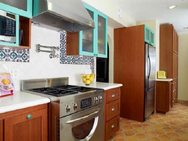 The appearance of this kitchen looks beautiful and elegant. This design as the name implies Colorful English Farmhouse kitchen. This kitchen is a type of vintage kitchen with bright colors. Then use classic furniture with a choice of bright colors. This design makes this kitchen look old-fashioned but looks very attractive and comfortable. If you like designs like this, we hope you can make them as soon as.