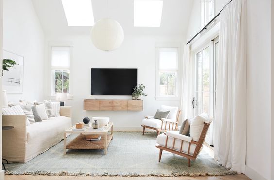- White. White color is often used as the main base color in Scandinavian design to make the room appear bright. Making white as the basic color of a small living room can also make the living room feel wider and more comfortable.