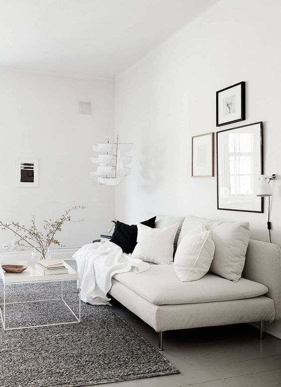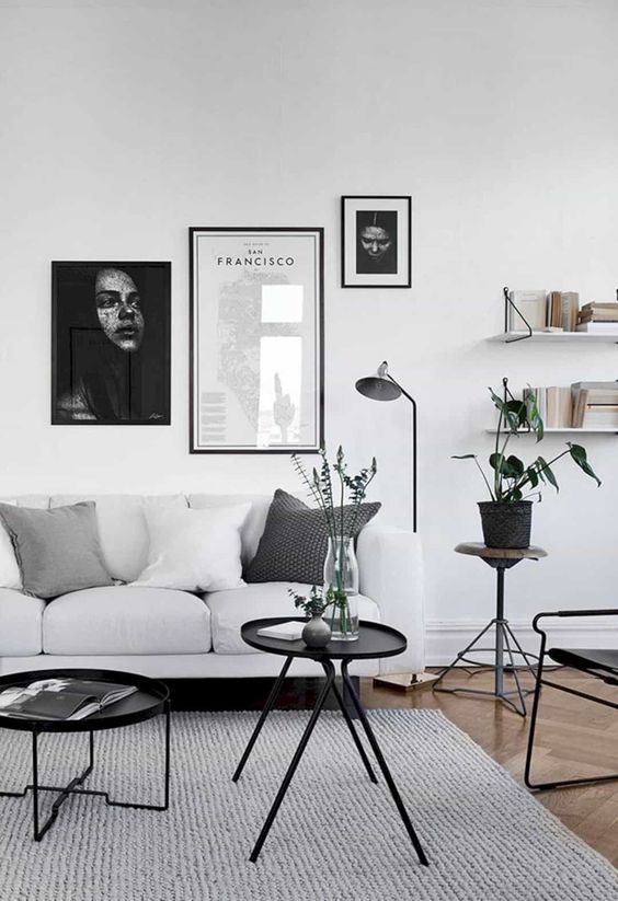 As a spot that has a large enough influence on a small living room, it makes the walls a spot that must be decorated. Black and white pictures and paintings are the most appropriate decoration for a monochrome small living room. Try to hang the pictures or paintings neatly to create a neat and clean small living room.