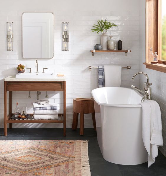 Modern Vintage Bathroom Design Ideas Combined White Color Scheme