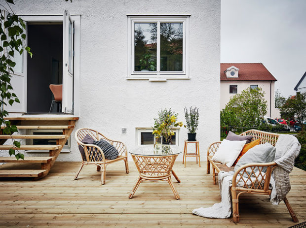 We know that most people think that the terrace is only for decoration of the front garden of the house. But really, it can also be made into an open living room to welcome guests and for a place to relax. If you know, the atmosphere on the terrace is more enjoyable than inside the house because we can enjoy the outside air and the surrounding view, and with an open space, you get a pleasant atmosphere. Therefore, make your terrace as beautiful and comfortable as possible so that you can truly enjoy life with your family. In this article, we will give some pictures of beautiful Scandinavian design terraces in front of your house that you can use to welcome guests and gather with family.