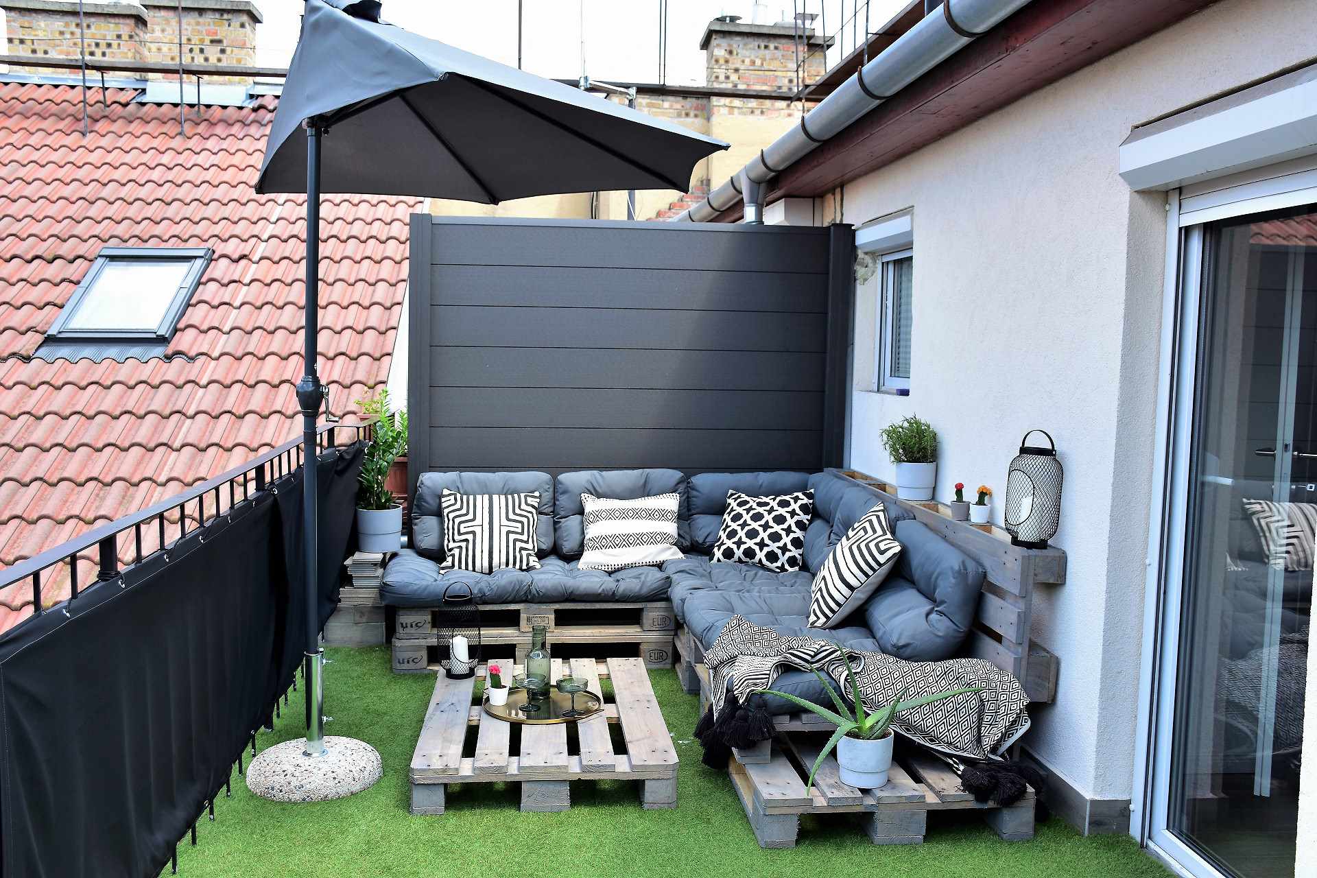 The appearance of this Scandinavian terrace design will amaze you. The black color of the chairs on the terrace makes you feel comfortable and calm. Moreover, this terrace chair has included sofa cushions. Of course, make it look more attractive.