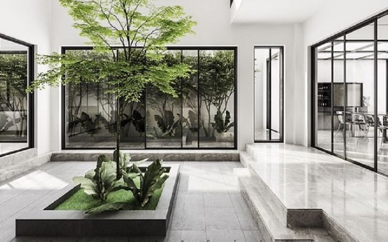 The advantage of this garden is the interior of your house will be more pleasant. Then, you can use small trees and flowers to add a green impression to your garden.