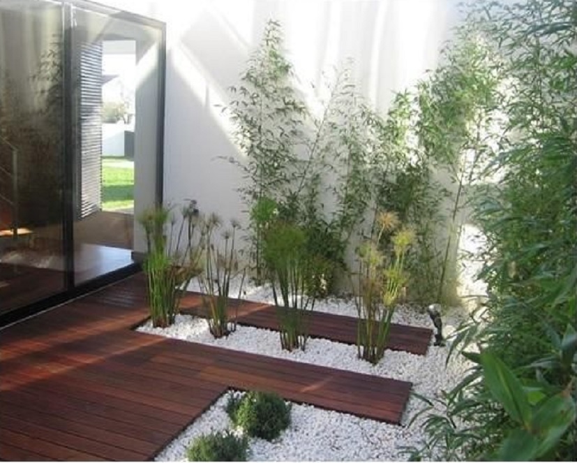 Therefore, you can create a small garden with white pebbles, small trees, and other attractive accessories. Hopefully, you can make a simple garden like this picture.