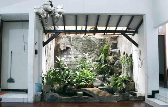 A house will not be complete without a garden. A small and beautiful garden in the house can be entertainment too, as a stress reliever. To create a beautiful small garden in your home, of course, you can decorate it with flower pots, natural stones, and a fountain-like in this picture. With decorations like this, your small garden will look beautiful and fun.