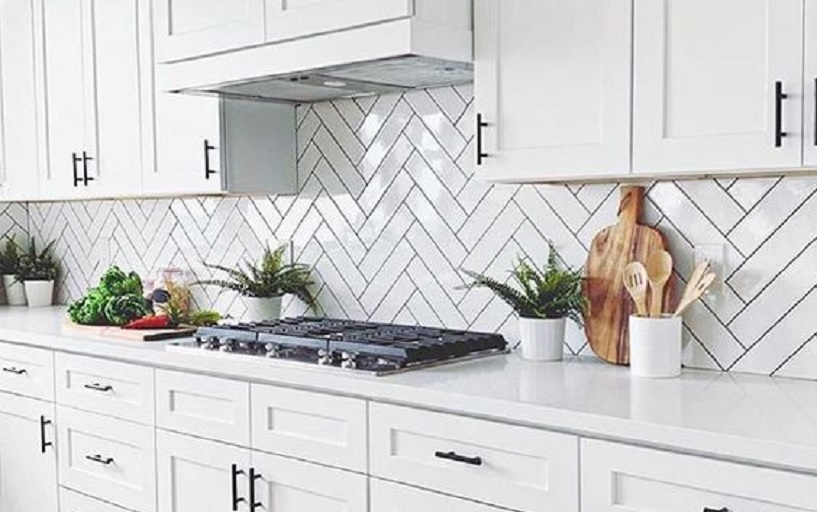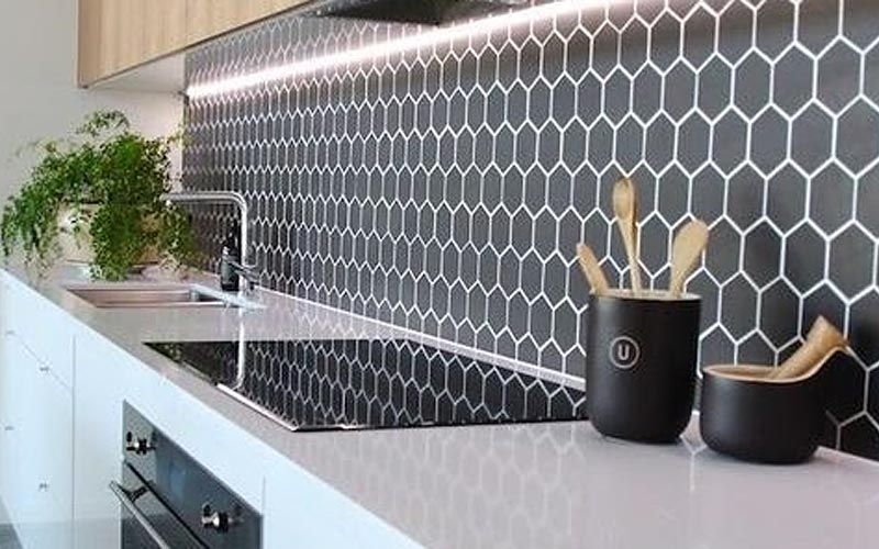 Like In this picture, you can make your kitchen interior more attractive. However, this black ceramic kitchen wall design is not suitable for a small kitchen. If you design it wrong, your kitchen will look small and cramped.