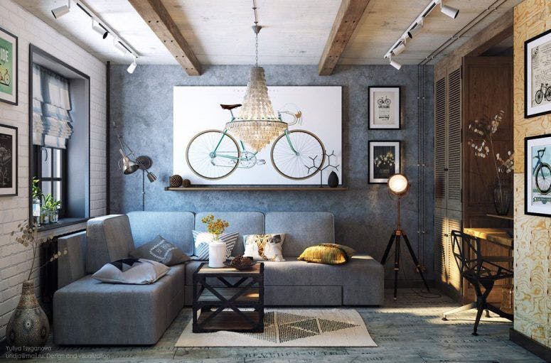 Monochrome Living Room with Industrial house design is synonymous with the impression of “distinctive” unique. To display this characteristic is using the exposed brick. A design like this makes this living room look attractive and artistic.