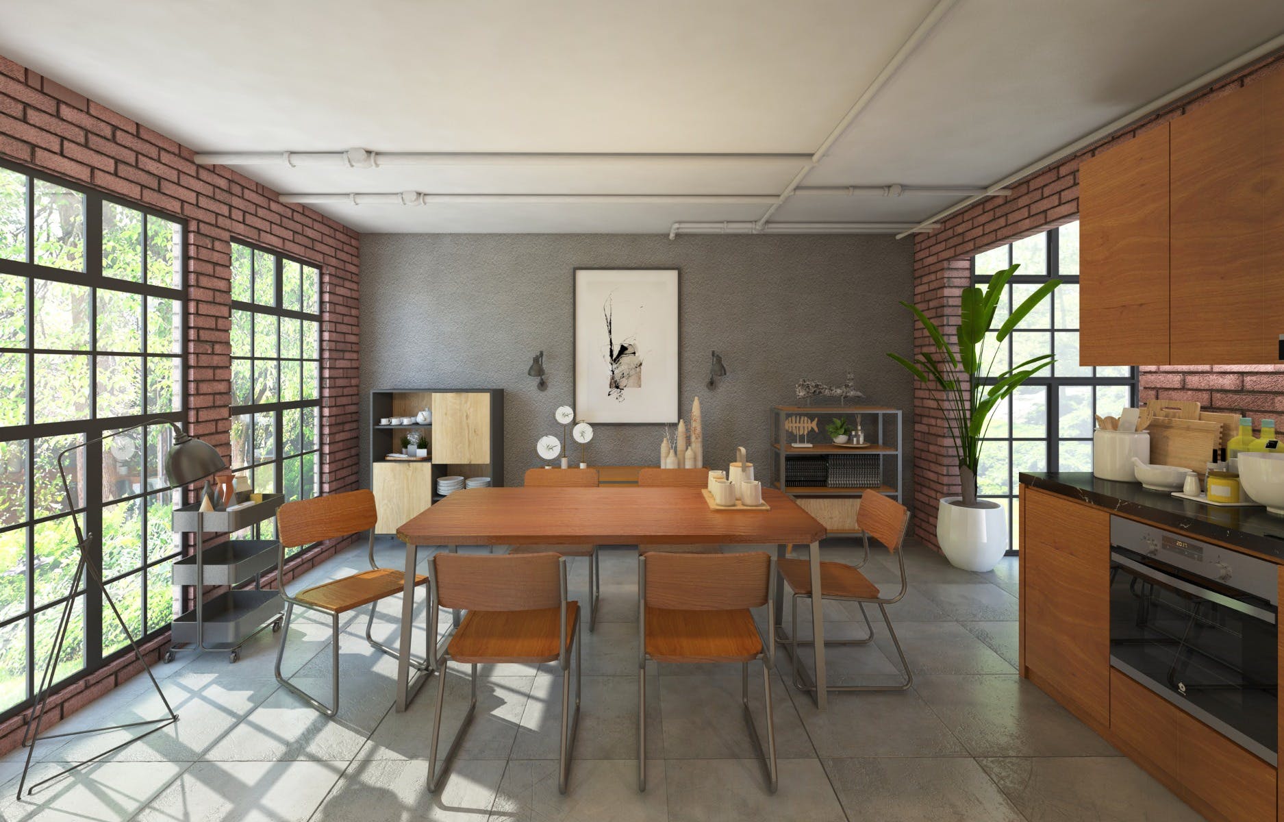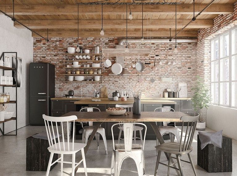 To designs with exposed brick material, then, the concept is not separated from industrial design. As you can see, this dining room is a combination of exposed brick and metal furniture. For example, in the dining room, you can use metal dining chairs with a choice of monochromatic colors so that this dining room looks beautiful and artistic.