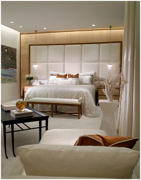 By using lights, your bedroom can be made elegant and luxurious. Just use a long pendant lamp and hang it on the side of the bed. Then to make the bedroom look bright, recessed lighting fixtures are the most appropriate lights to use.