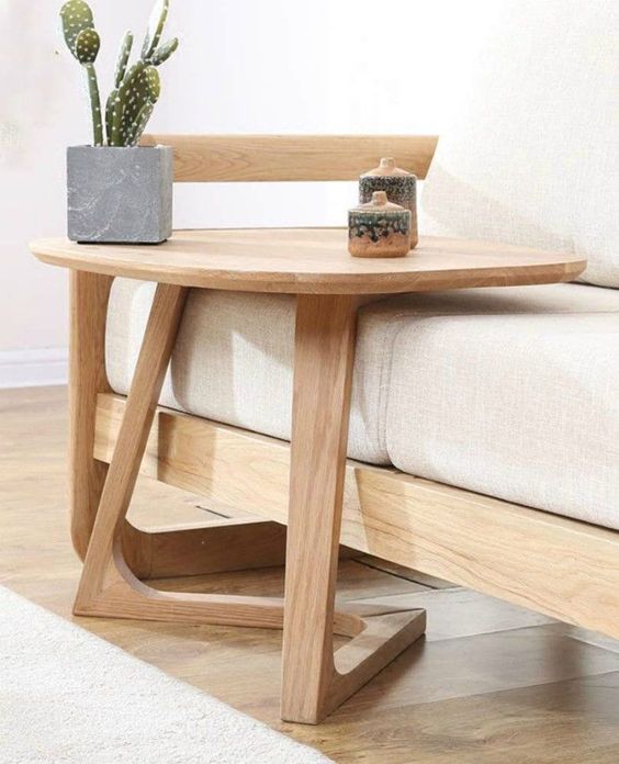 To make the side end table match with the sofa, you can use the same material. Like the picture above, wood with light colors is the material used for sofas and tables so that the sofa and table look harmonious and beautiful.