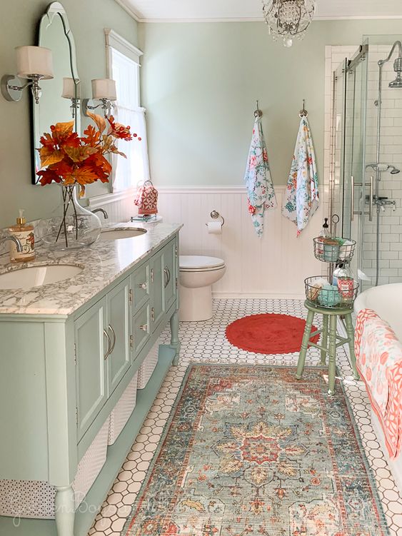 Try not to use a white rug because it will quickly look dirty and will interfere with the appearance of the bathroom in your house.