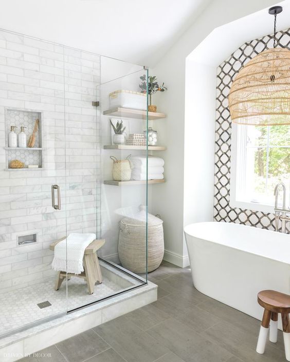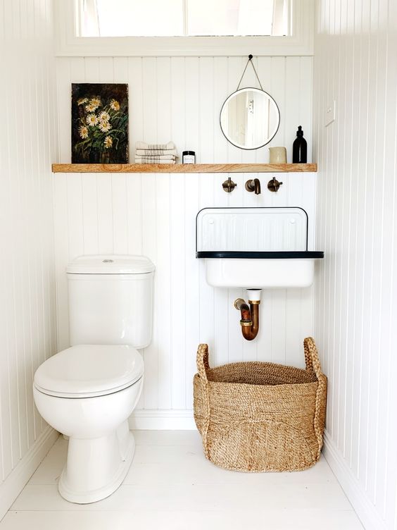 For those of you who use more than one rattan basket, you can put it in a place that will not make the bathroom feel cramped, such as ladder shelves, floating wall shelves, under cabinets, and so on.