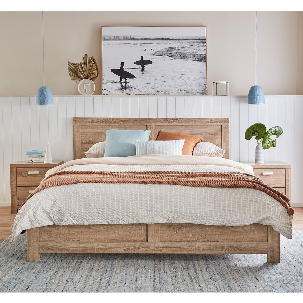 Then, you can see in this picture, the atmosphere in the bedroom that we designed appears for several reasons, such as the photo on the wall, the beautiful colorful pillows, and the small plants on the bedside. Then, for the walls themselves, use muted cream-colored paint. Of course, we are happier with the design of this master bedroom.