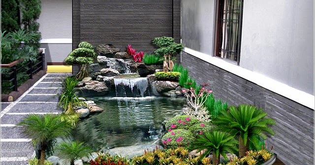 The garden does not always have to be planted with trees and flowers. You can create a dream flower garden by designing a small fish pond in front of the house. Make a fish pond using natural stone-like in this picture. Then install a fountain so that the fish in the pond can play. To complete the fish pond, you can plant flowers or small trees so that the green impression in the garden is not lost and makes the garden look like your dream.