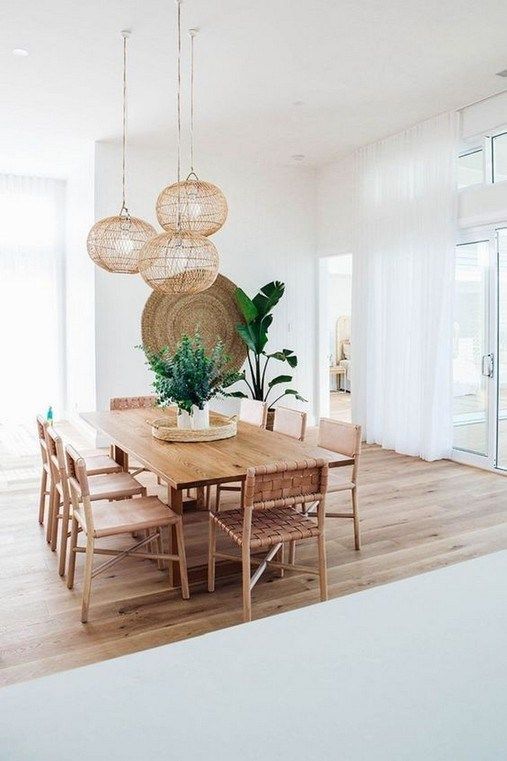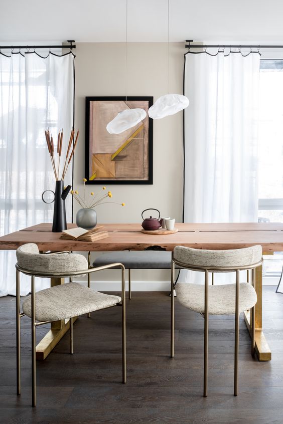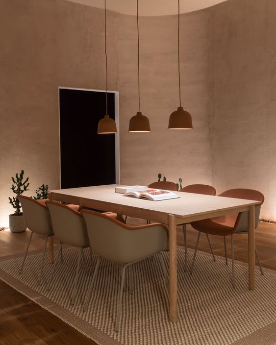 Three Pendant Lamp Makes The Japandi Dining Room Looks Simple but Attractive