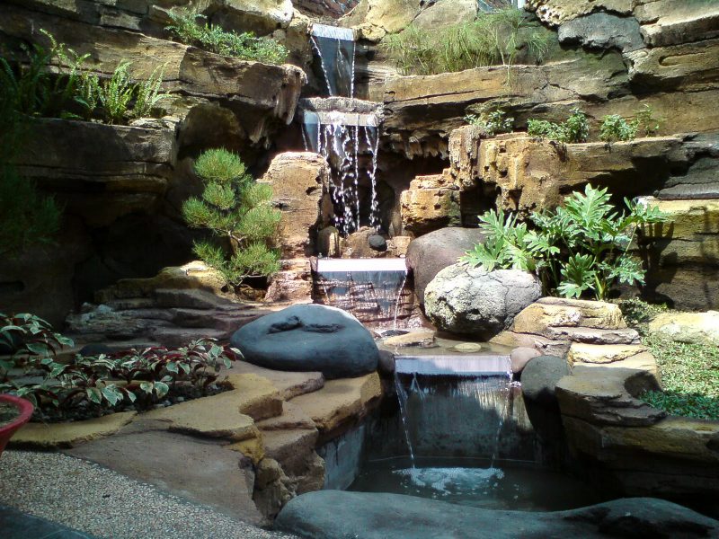 To making the beauty of the fish pond, the edge of the relief is planted with flowers and makes this fish pond look beautiful. If you want to make a relief on the wall side to your house, you can make it like this picture. Of course, you have to order at the relief decoration company.